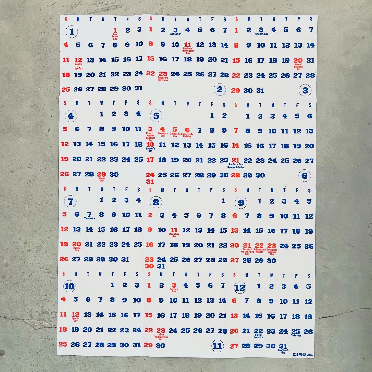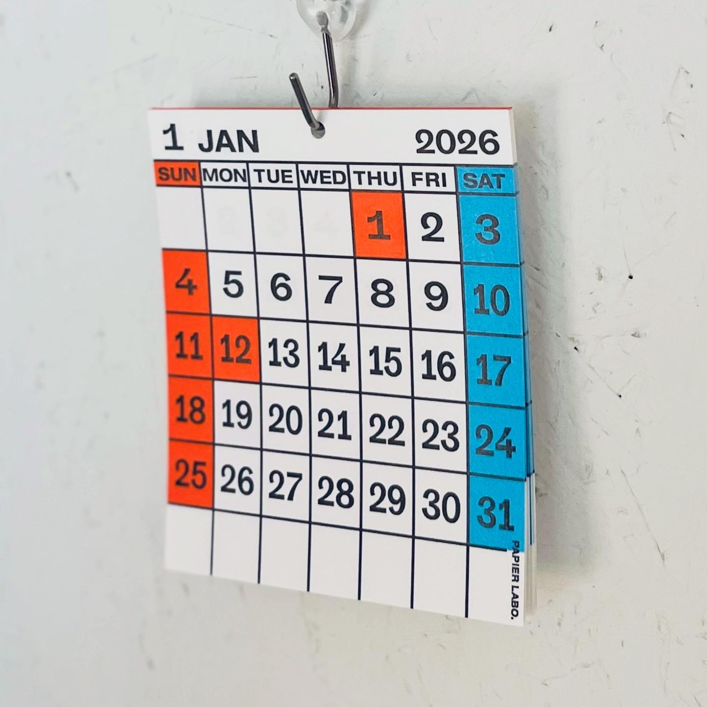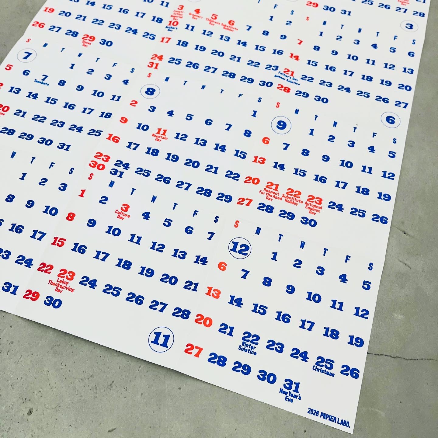 神宮前にある「紙と紙にまつわるプロダクト」をコンセプトに、オリジナルプロダクトや世界中から独自の視点でセレクトしたものを扱うショップ『PAPIER LABO.(パピエラボ)』より、2026年のオリジカレンダーが届きまた。パピエラボのロングセラーアイテムで、定番のポスタータイプカレンダーとマンスリーミニカレンダーです。
